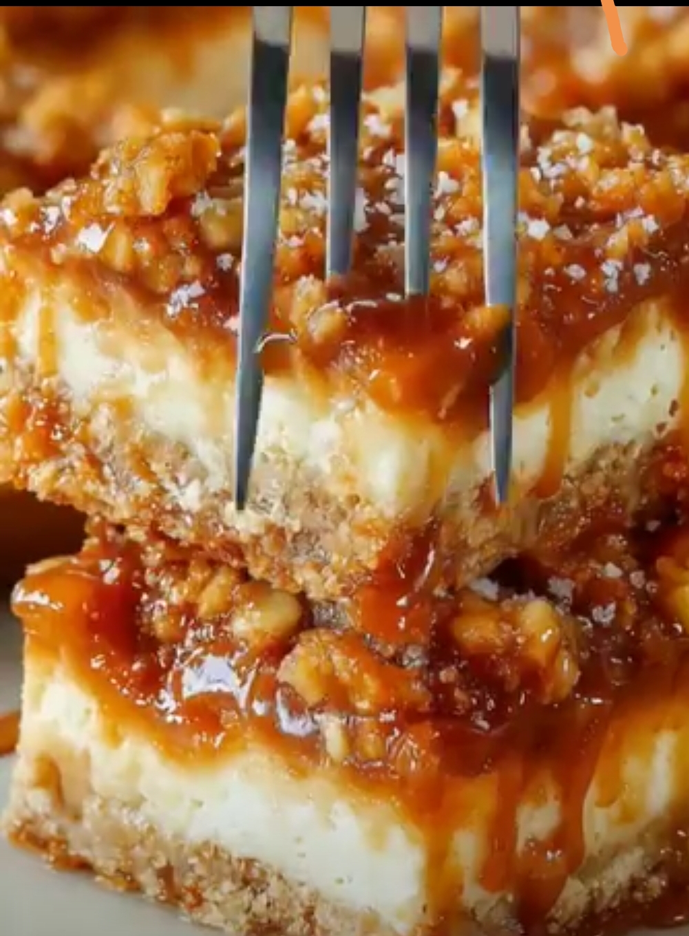 Salted Caramel Apple Cheesecake Crunch Bars 🍎🍰✨