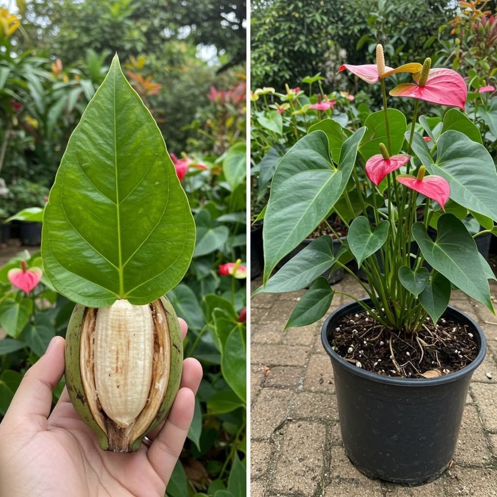 Propagating anthuriums with the help of bananas is a gentle, eco-friendly method that nourishes your plants naturally. In just a few weeks, you’ll see strong roots, lush foliage, and colorful blooms that brighten any corner of your home. With a touch of nature’s sweetness, your anthuriums will flourish beautifully — no chemicals needed! 🌿🌸