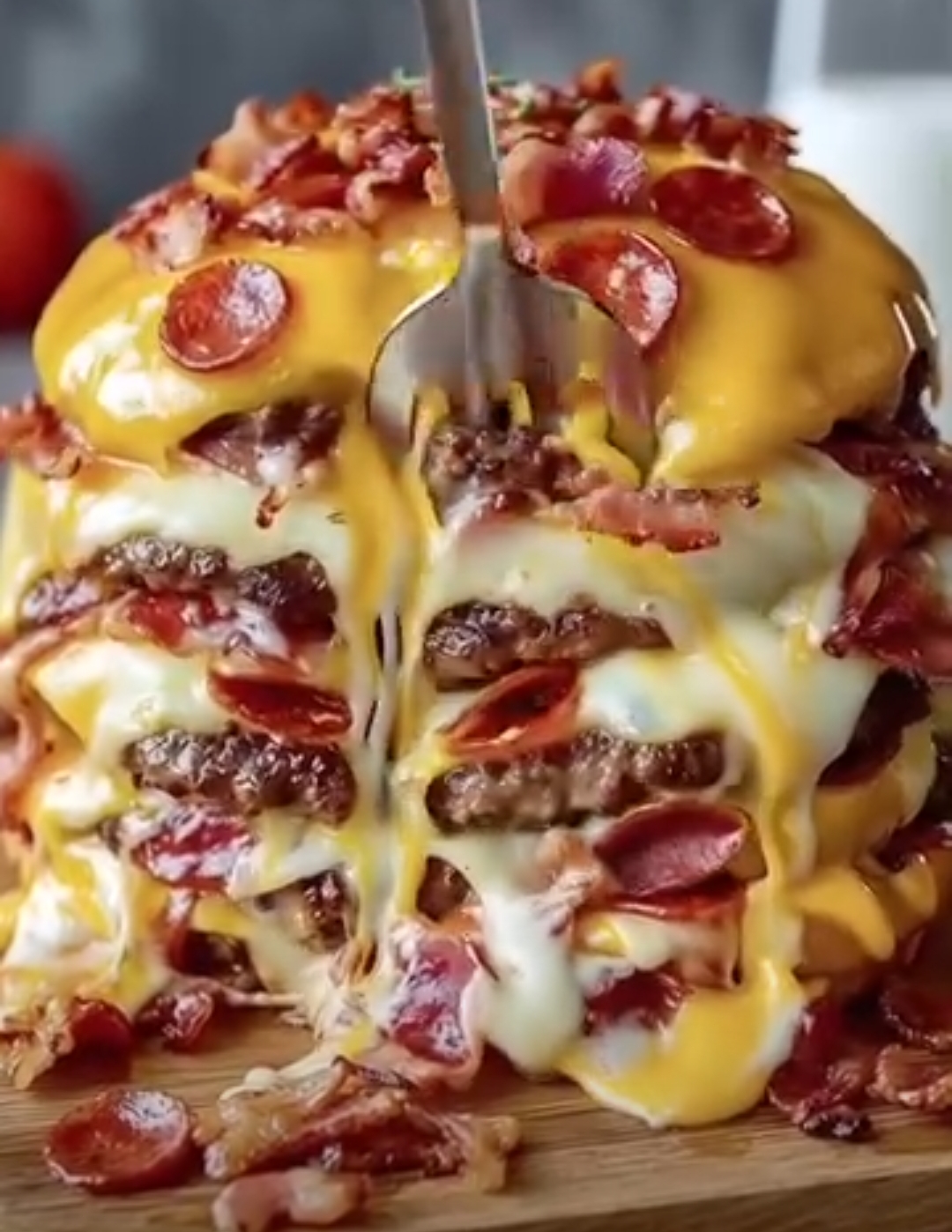 Ultimate Pepperoni Cheeseburger Stack 🍔🧀🍕