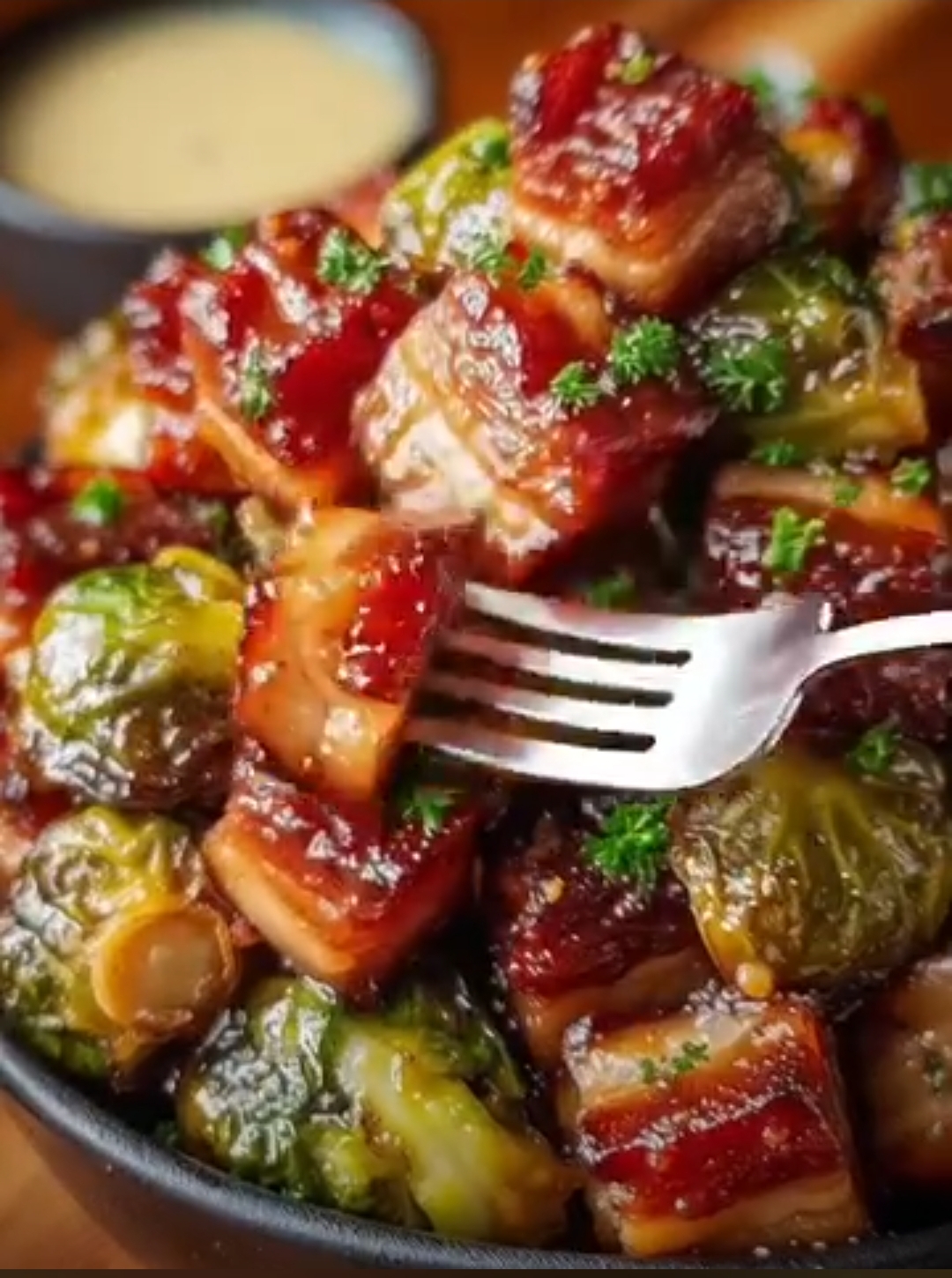 Crispy Brussels Sprouts with Maple Glazed Pork Belly 🥓🥬🍁