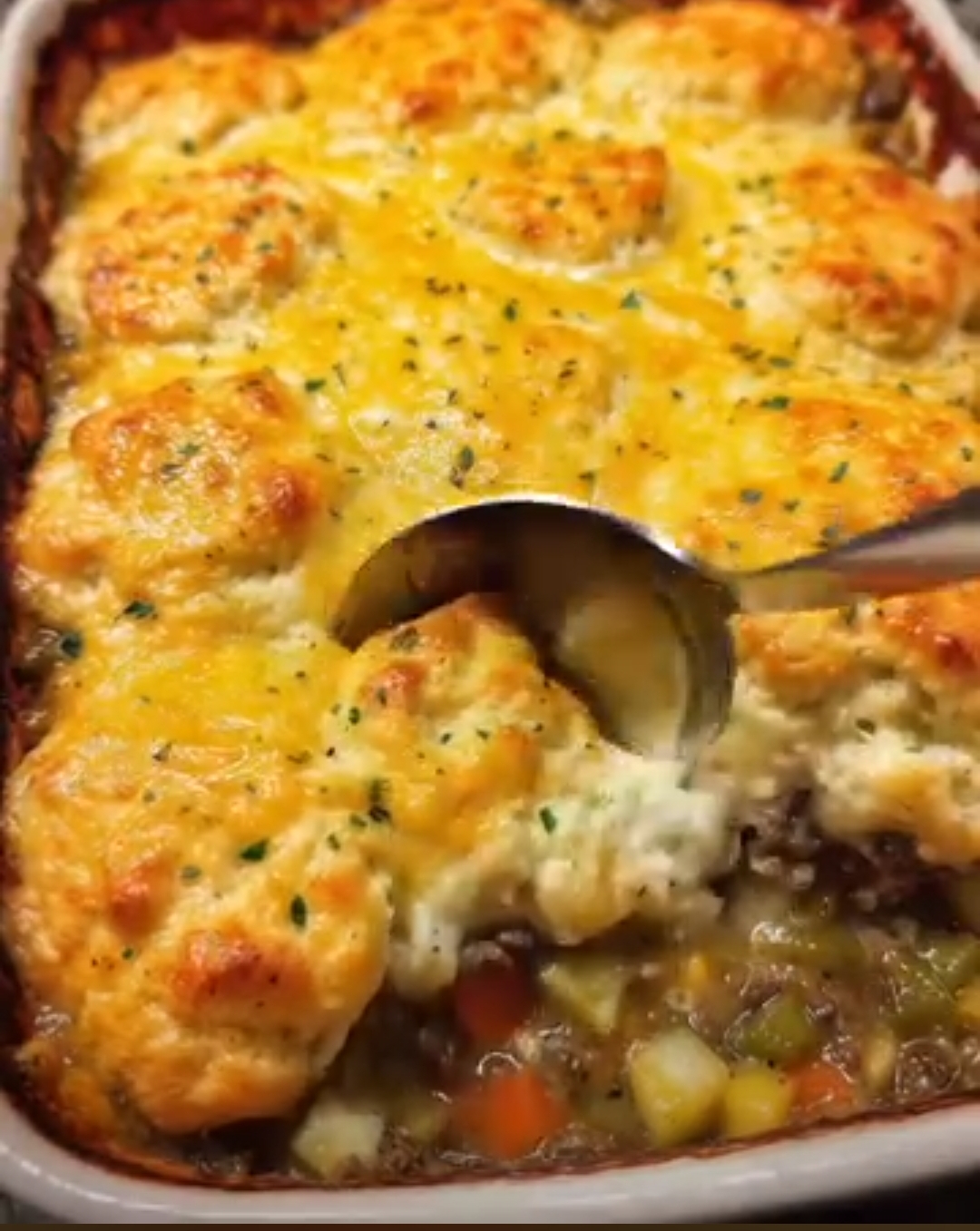 This Easy Ground Beef Pot Pie Casserole with Cheddar Bay Biscuit Topping delivers everything you want in a comforting family dinner—creamy filling, golden biscuits, rich flavor, and effortless preparation. It’s a warm, satisfying dish perfect for busy evenings, potlucks, or anytime you want hearty comfort on the table.
