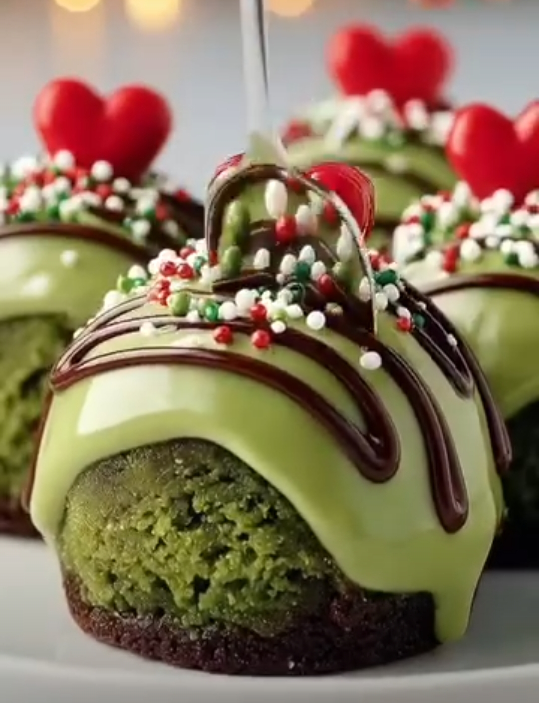 Grinchy Mint Chocolate Cake Bites are fun, festive treats made with a fudgy chocolate cake base and a smooth mint-green coating. Decorated with tiny red candy hearts and sprinkles, these no-bake cake bites are perfect for Christmas parties, gifting, or holiday dessert platters. Simple to prepare and full of flavor, they offer the perfect balance of rich chocolate and refreshing mint.