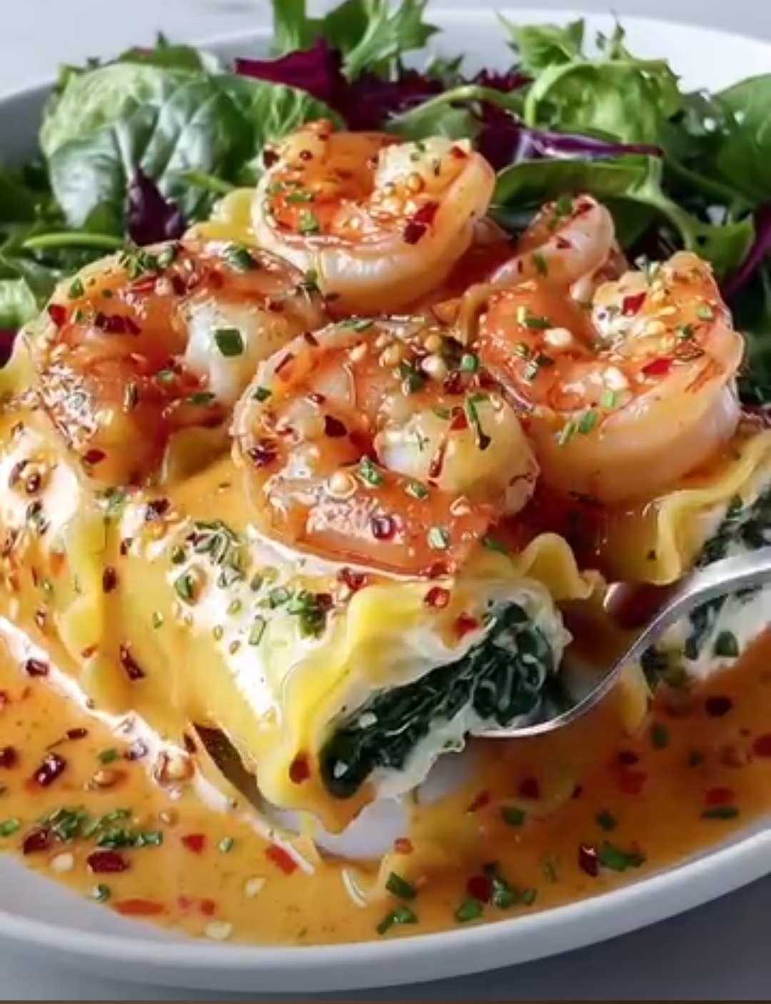 Creamy Shrimp & Spinach Lasagna Roll-Ups bring together tender pasta, rich cheese, fresh spinach, and succulent shrimp in a silky cream sauce. Comforting, flavorful, and visually impressive, this dish is perfect for both everyday meals and special dinners.