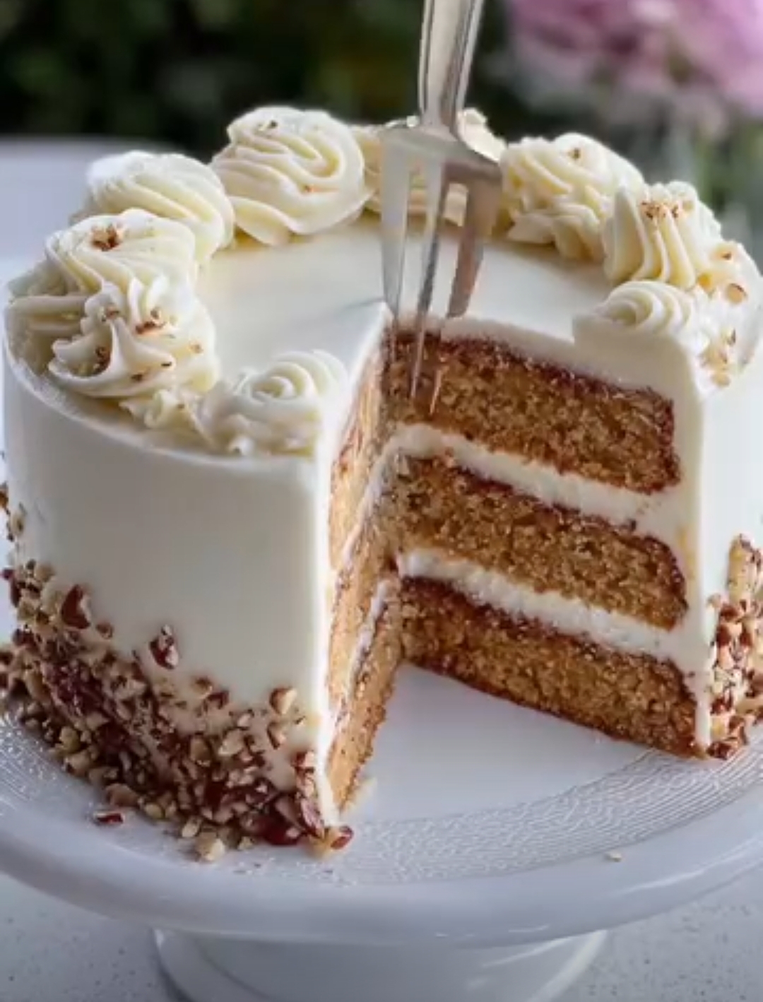 Vanilla Walnut Lace Cake is an elegant, tender layer cake enriched with finely chopped walnuts and wrapped in smooth, creamy butter frosting. With its soft vanilla crumb, nutty depth, and delicate scroll piping, this cake delivers both beauty and classic flavor. Perfect for celebrations, holidays, or any occasion that calls for something timeless and refined.