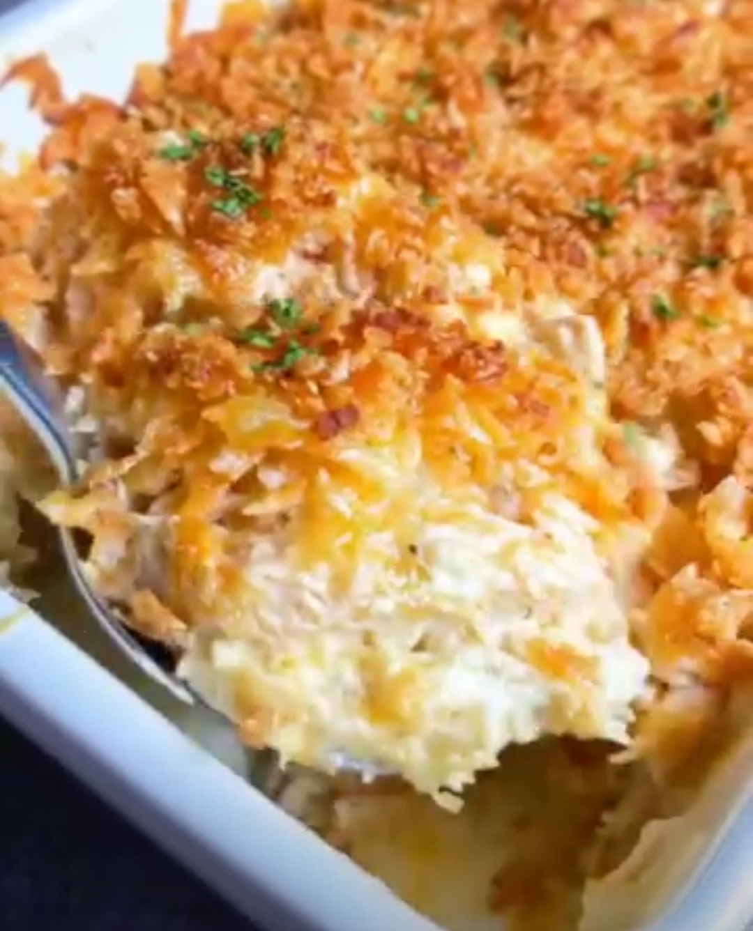 A rich, creamy, ultra-comforting casserole packed with tender chicken, velvety cheeses, and a buttery cracker topping — a true family-favorite that tastes like pure luxury.