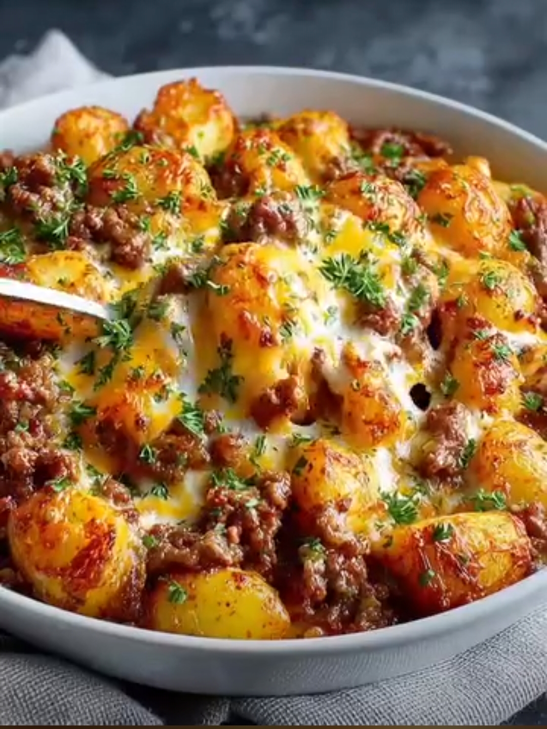This Cheesy Beef & Potato Skillet Bake is the ultimate comfort-food casserole — hearty, flavorful, and perfect for busy nights. Tender potatoes, seasoned ground beef, melty cheese, and a rich creamy sauce come together in one pan, making it ideal for easy family dinners, budget-friendly meal ideas, and one-skillet casserole recipes that readers love. Every bite is warm, cheesy, and satisfying, just like the classic baked dishes people search for during weeknights.