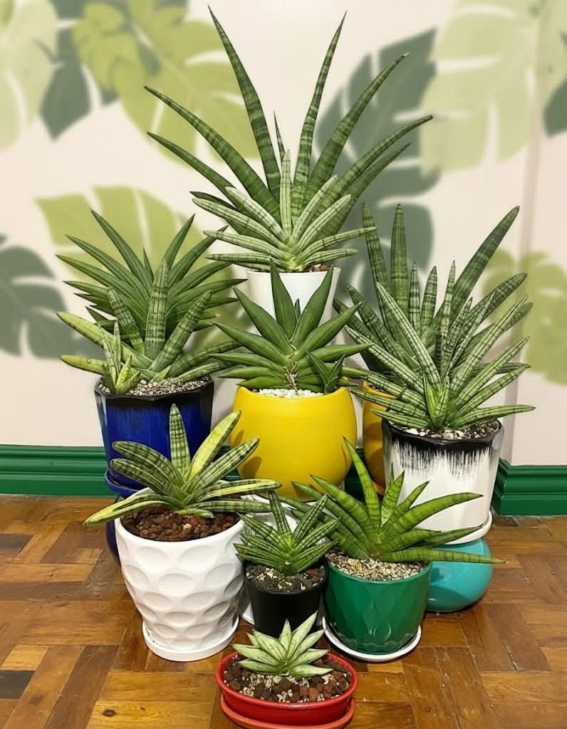 With minimal effort and the right setup, your Sansevieria plants will stay beautiful year-round, multiplying into a full collection just like the one in the photo. This makes Snake Plants one of the most rewarding options for anyone interested in sustainable gardening, indoor plant design, or beginner-friendly home décor plants.