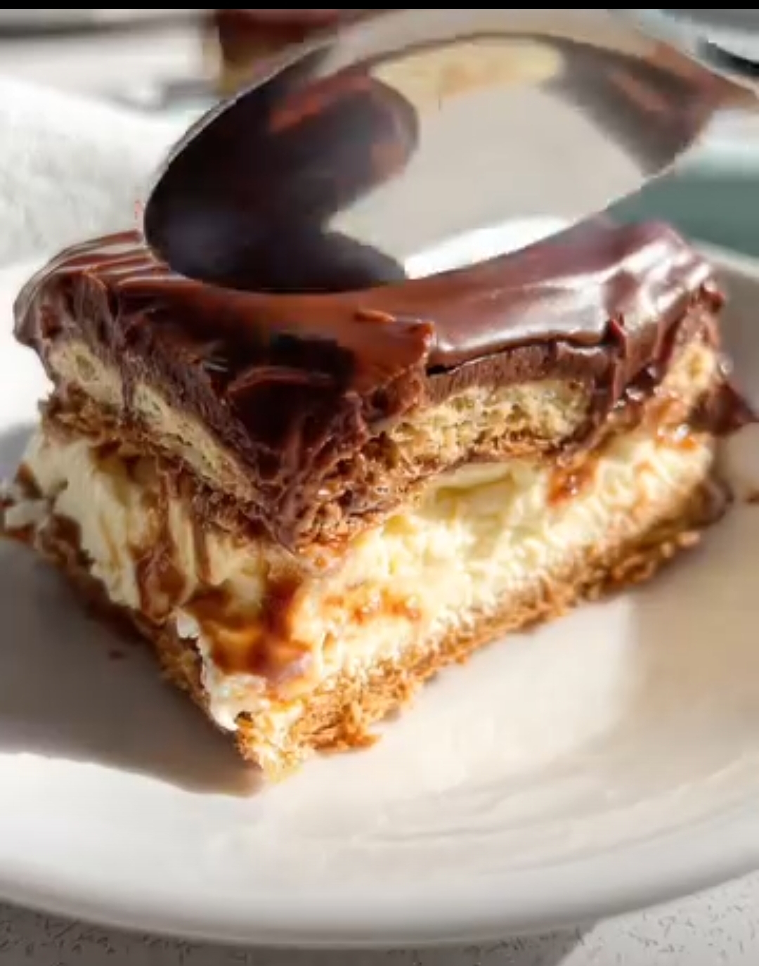 Soften the chocolate frosting slightly in the microwave (10–15 seconds). Spread evenly over the top graham layer. This creates the classic glossy finish found in bakery-style éclair desserts. - Chill to Set