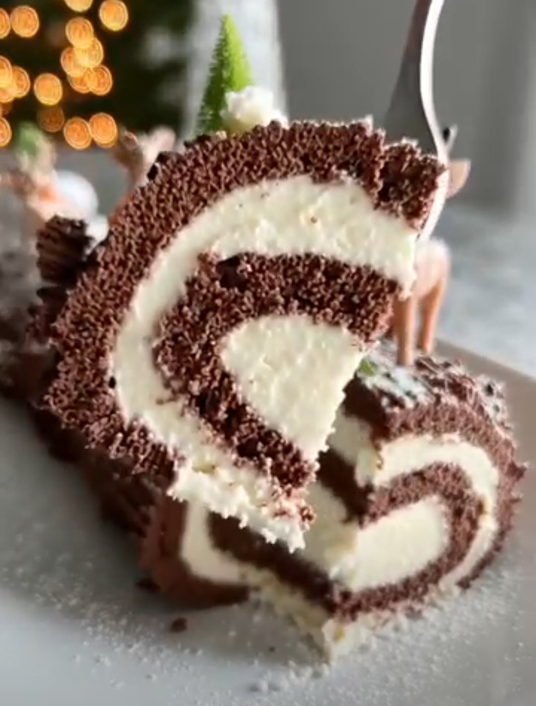 This dessert is perfect for readers searching for bûche de Noël recipes, holiday showstopper cakes, and easy Christmas yule log ideas with bakery-quality presentation.