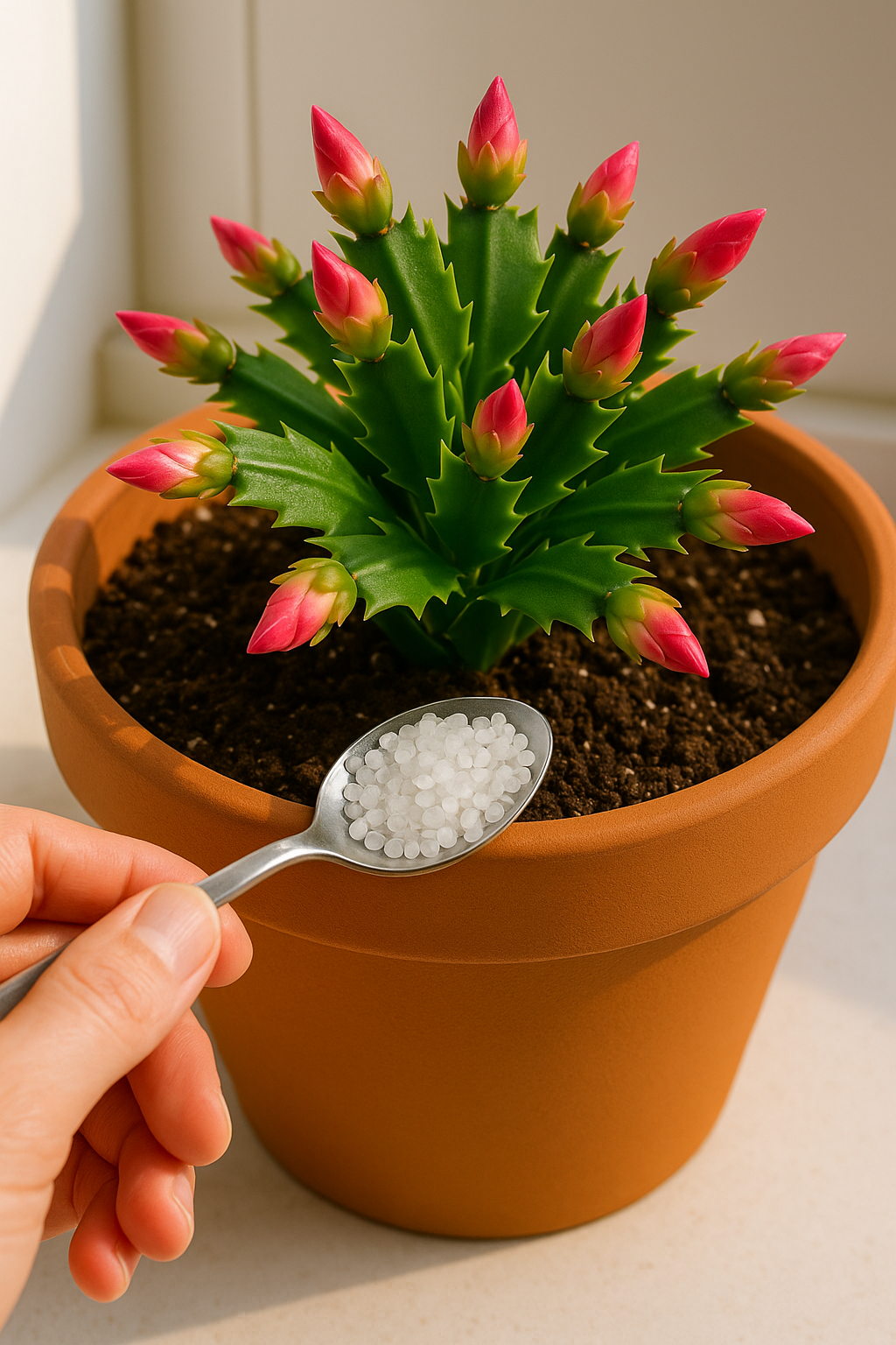 If your Christmas cactus refuses to bloom no matter how much light or water you give it, the problem is usually nutrient imbalance. This rainforest cactus needs the right minerals at the right time to trigger bud formation. Fortunately, there’s a simple one-spoon hack many experienced growers use to boost blooms almost instantly: a slow-release balanced fertilizer applied in very small amounts.