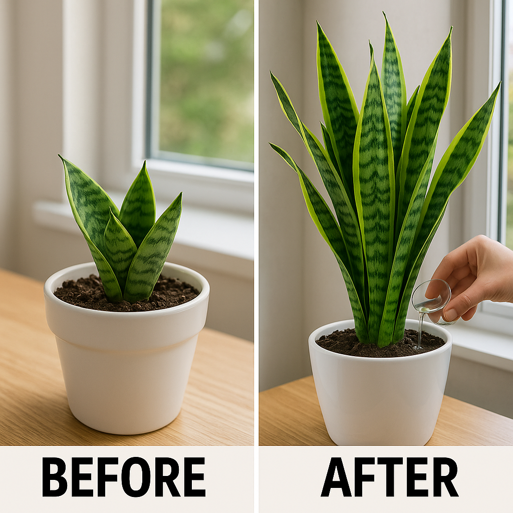 If your snake plant looks small, slow, or stuck in growth, you’re about to discover a simple liquid feeding trick that can transform it into a tall, lush showpiece in just a few months. Snake plants are known as tough indoor plants, but they still need the right nutrients to reach their full potential. This gentle growth-boosting formula improves root development, strengthens leaves, and encourages faster vertical growth without stressing the plant.