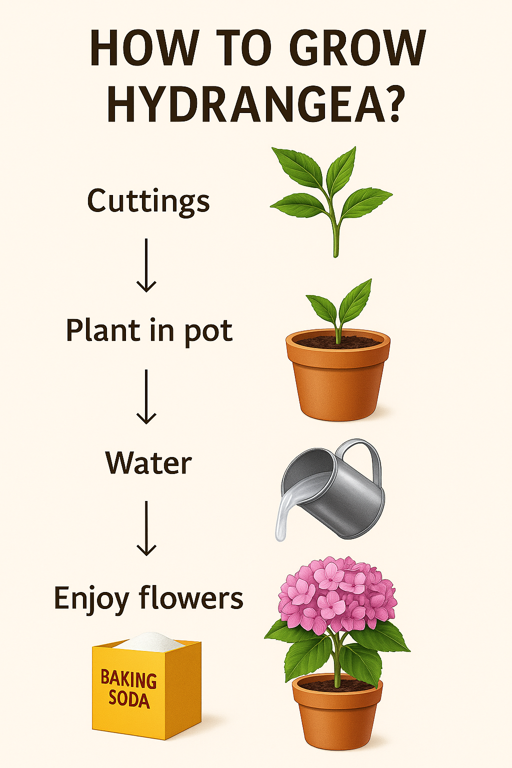 Once your hydrangea begins to grow, you can encourage stronger blooms by maintaining healthy soil conditions. Some gardeners use a tiny amount of baking soda around the soil surface because it slightly reduces acidity and helps prevent certain soil-borne issues. This should only be used sparingly and never as a substitute for proper care.