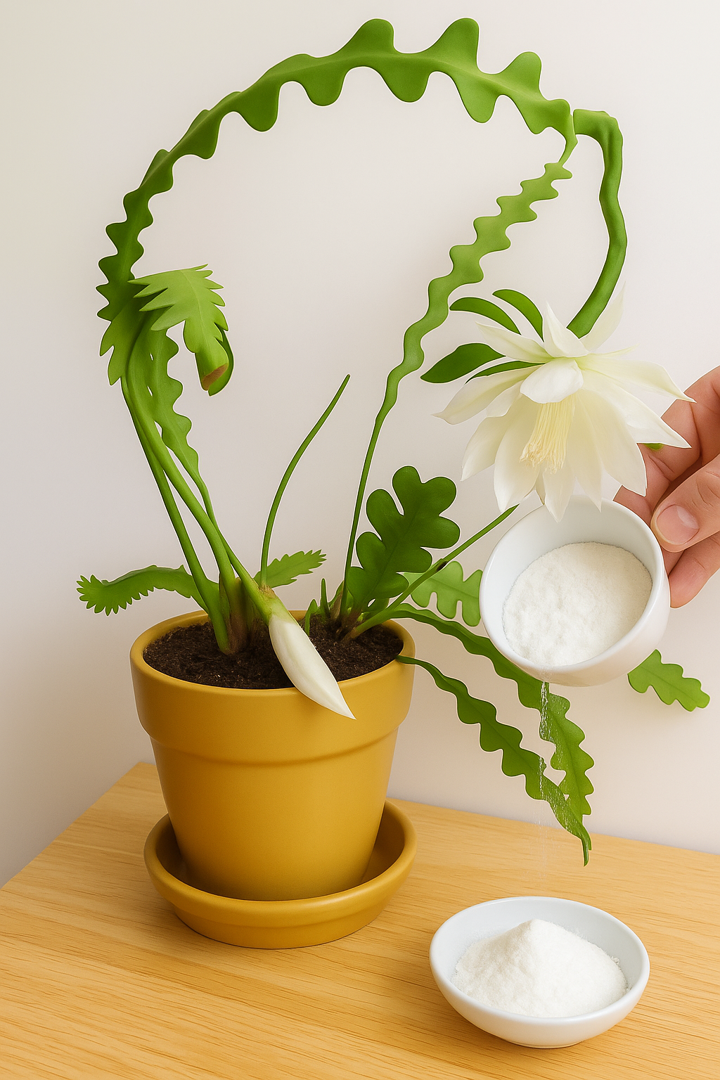 The Fishbone Cactus is not difficult to bloom once you understand what it needs. A simple nutrient boost from a gentle powder fertilizer can correct the one mistake that most growers overlook. Combine this with proper watering, light, and temperature management, and your cactus will reward you with strong growth and large, fragrant flowers.
