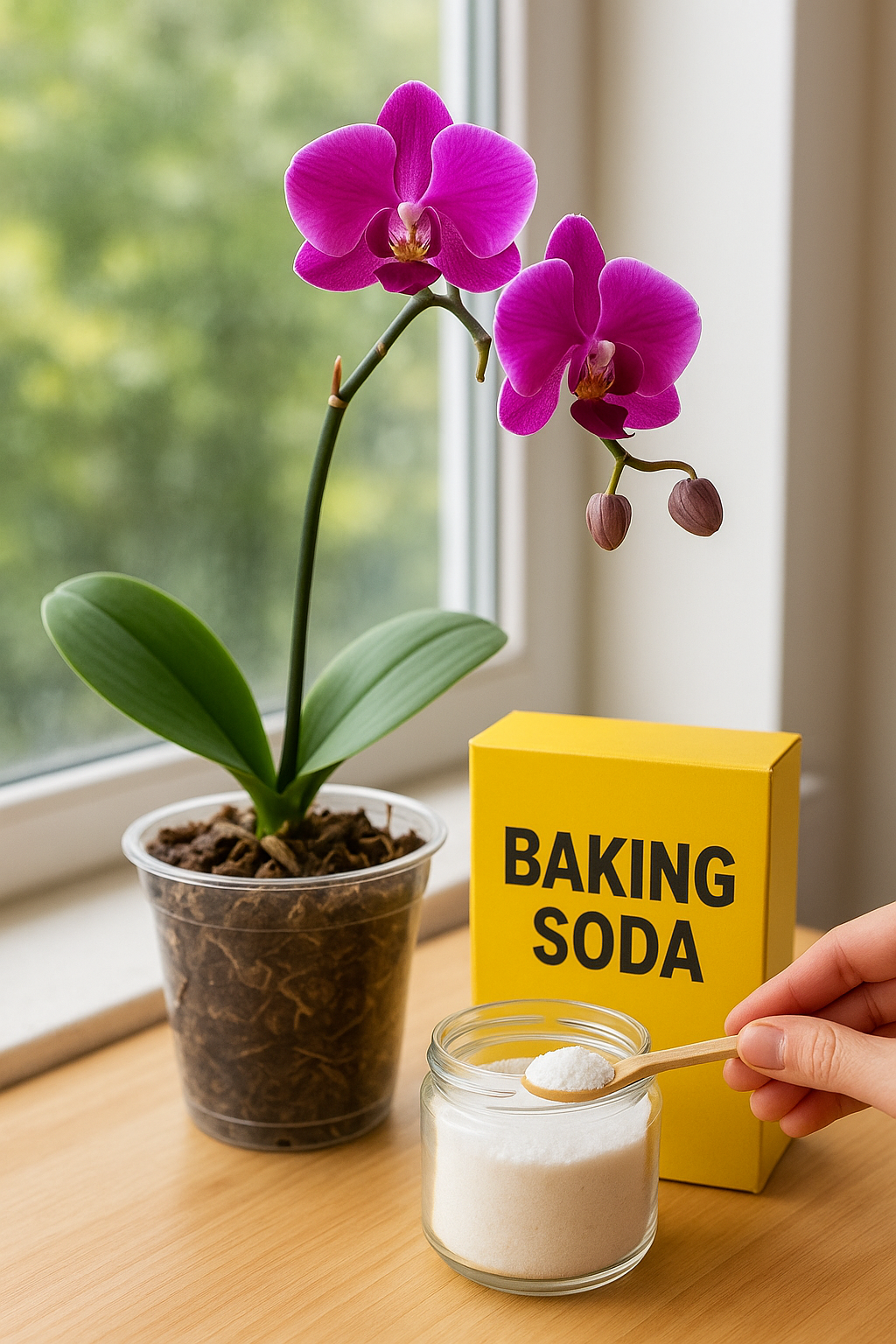 Sometimes the smallest household ingredients make the biggest difference. Baking soda is a simple, gentle way to help stabilize an orchid’s growing environment, especially when potting bark becomes old or acidic. A tiny pinch used correctly won’t harm the plant — and often gives it the support it needs to grow, recover, and bloom once again.