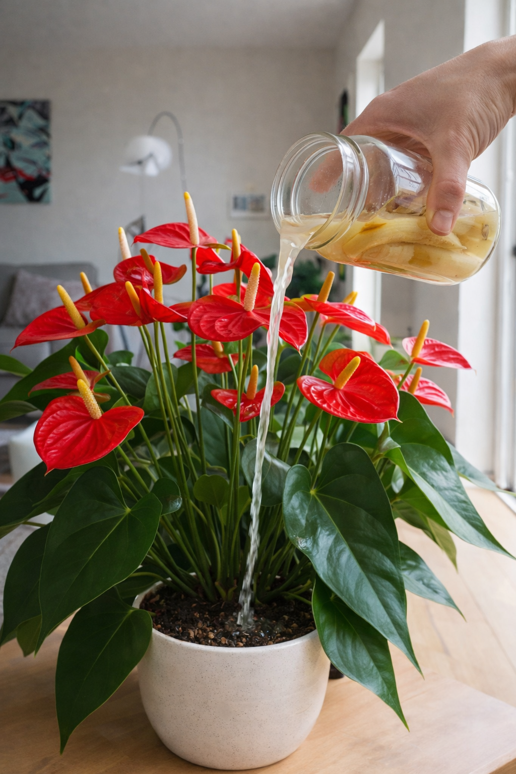 This article explains how banana peel water works, how to prepare it properly, and how to use it safely on anthuriums, while keeping your plant and interior environment in perfect condition.