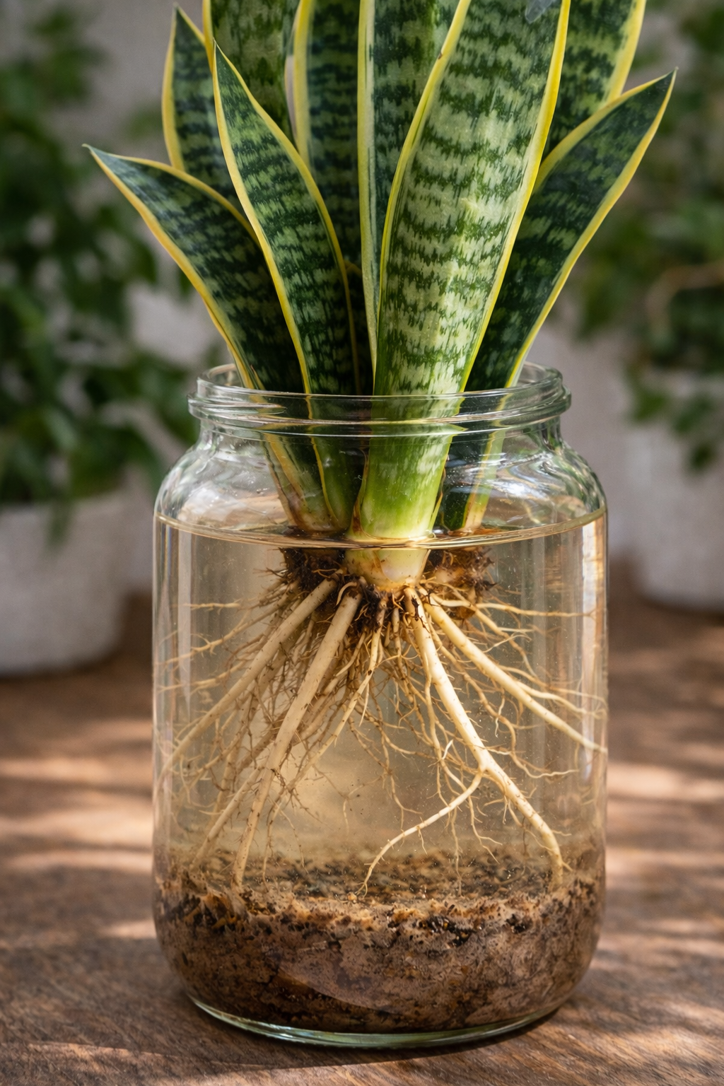 Snake plants store moisture and energy inside their thick leaves. When a leaf is cut properly, it redirects that stored energy toward forming new roots. This makes snake plants ideal for beginners, rental homes, and minimalist indoor spaces where plant care needs to stay simple.