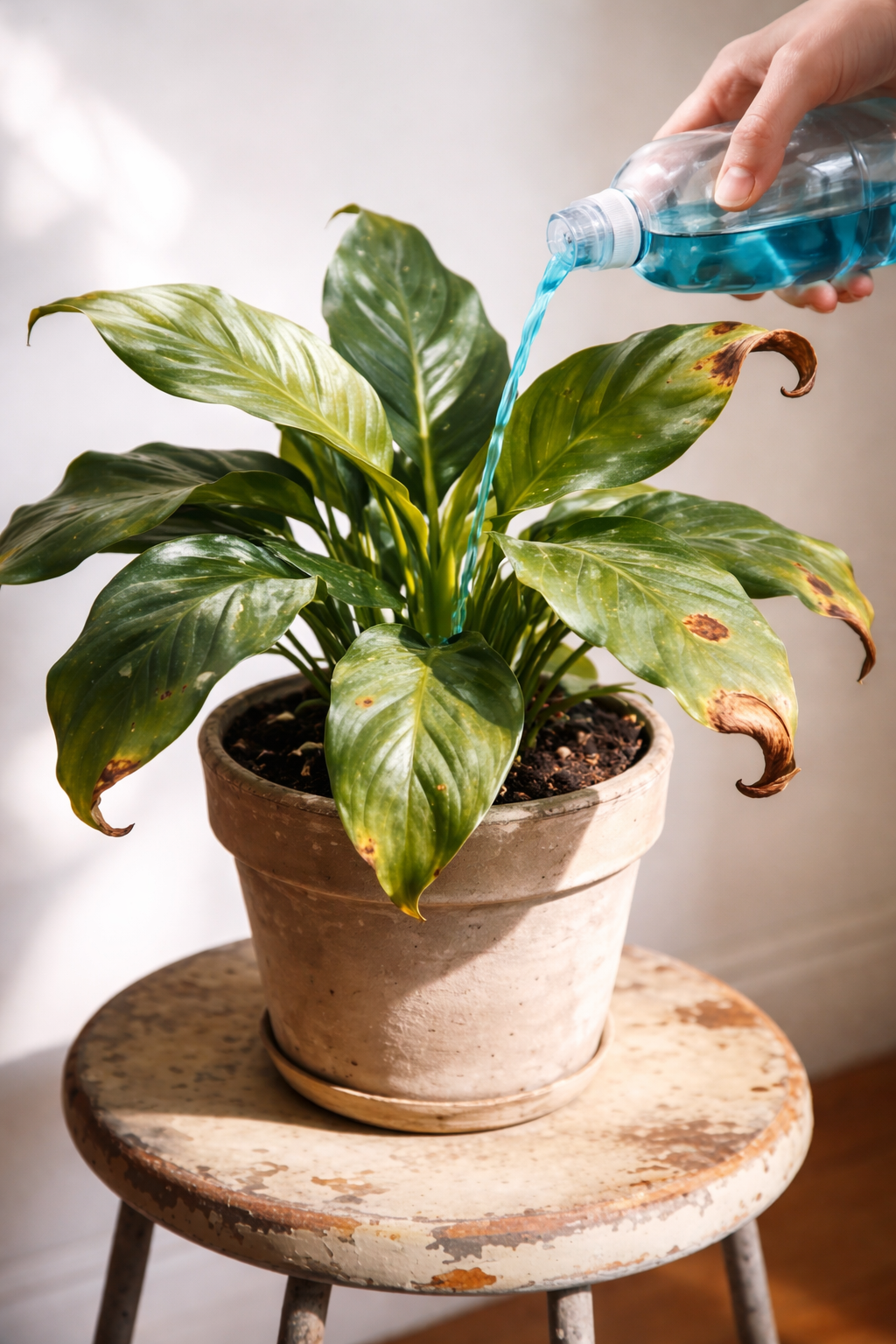 Bright or colored liquid fertilizers may look effective, but they are usually too strong for sensitive indoor plants. Peace lily roots absorb nutrients quickly, and excess minerals can overwhelm them.