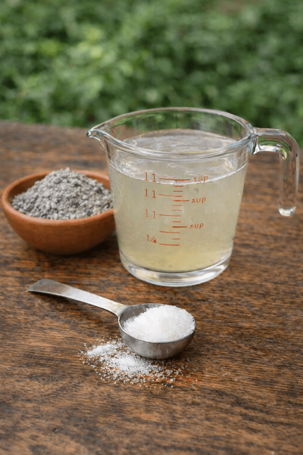 - Add 1 teaspoon of clean wood ash to 1 liter of water