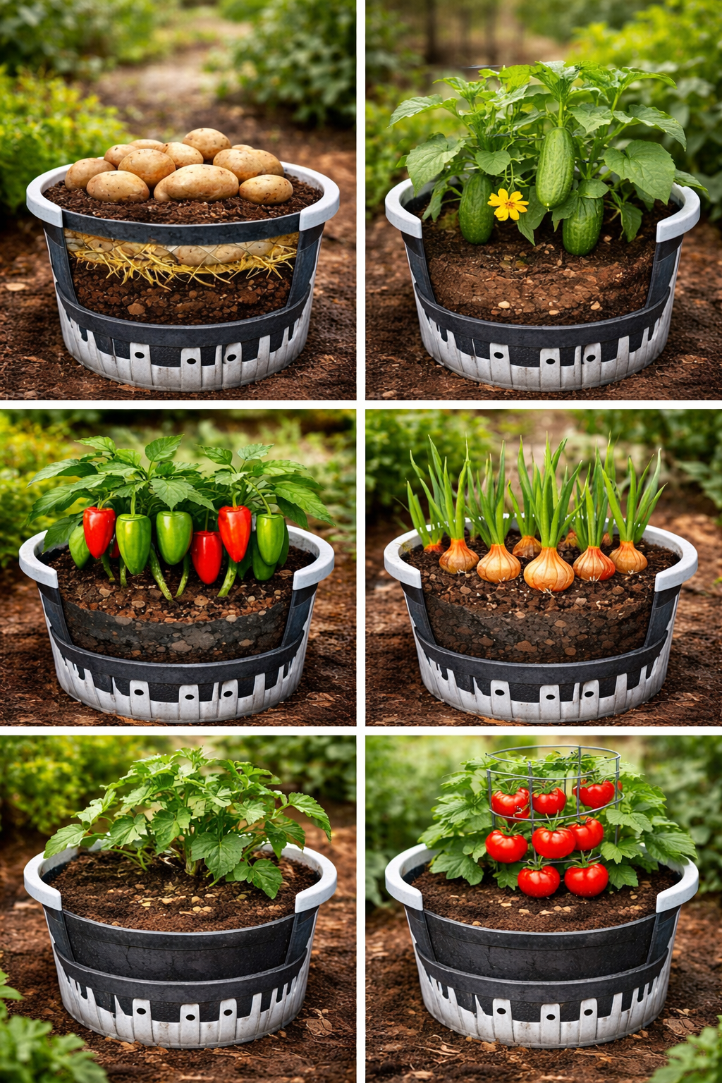 - Potatoes: plant low, add soil as they grow