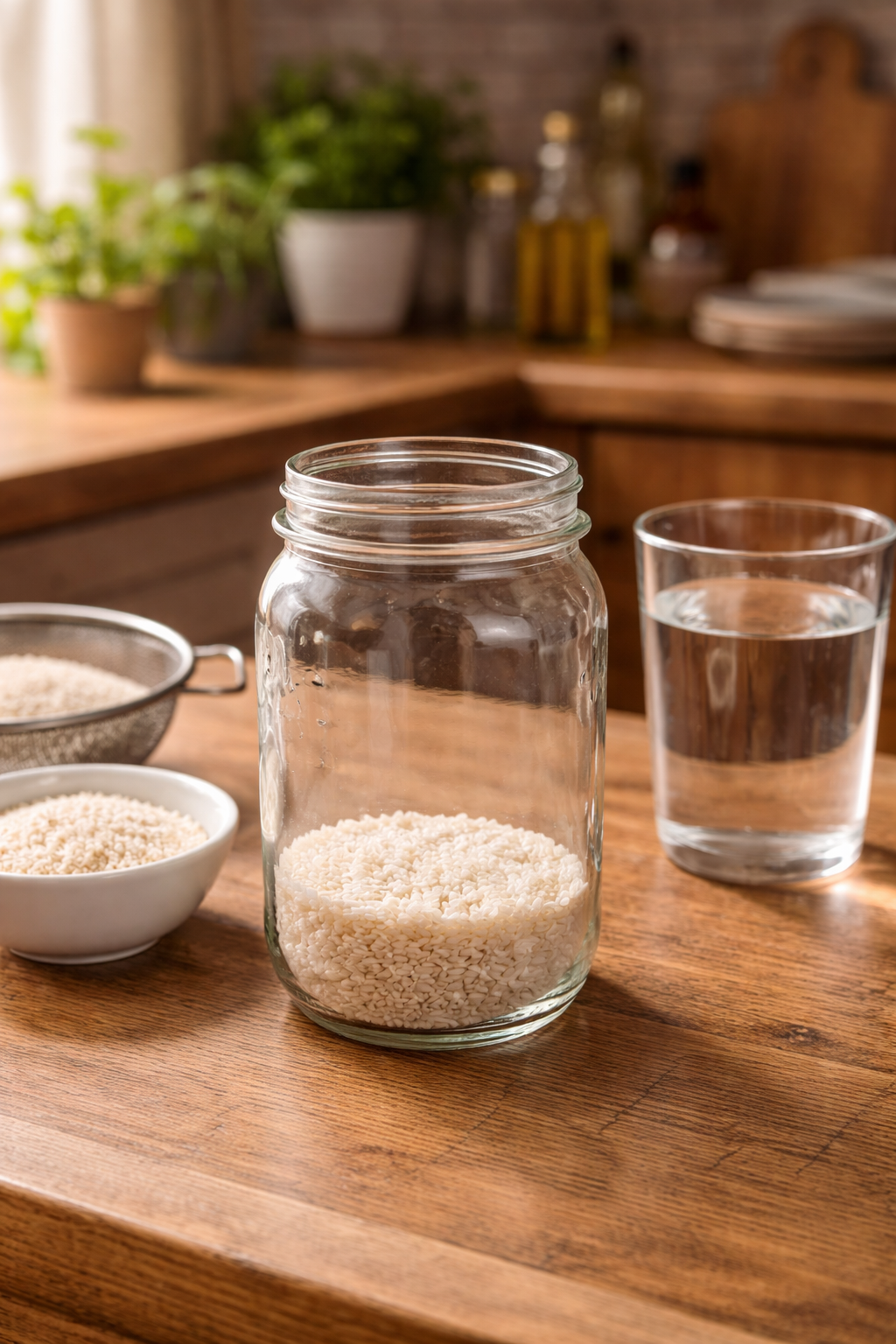 At first glance, it looks almost too simple to matter: a jar, plain rice, and water.