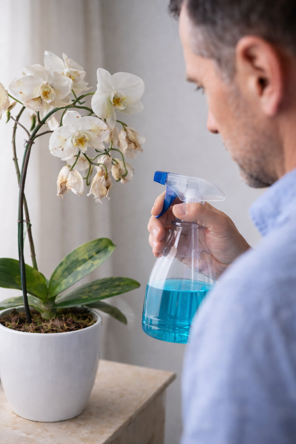 This guide explains what the blue liquid really is, why people misuse it, and how a calm, correct routine can slowly bring orchids back to balance — without stress, damage, or overcorrection.