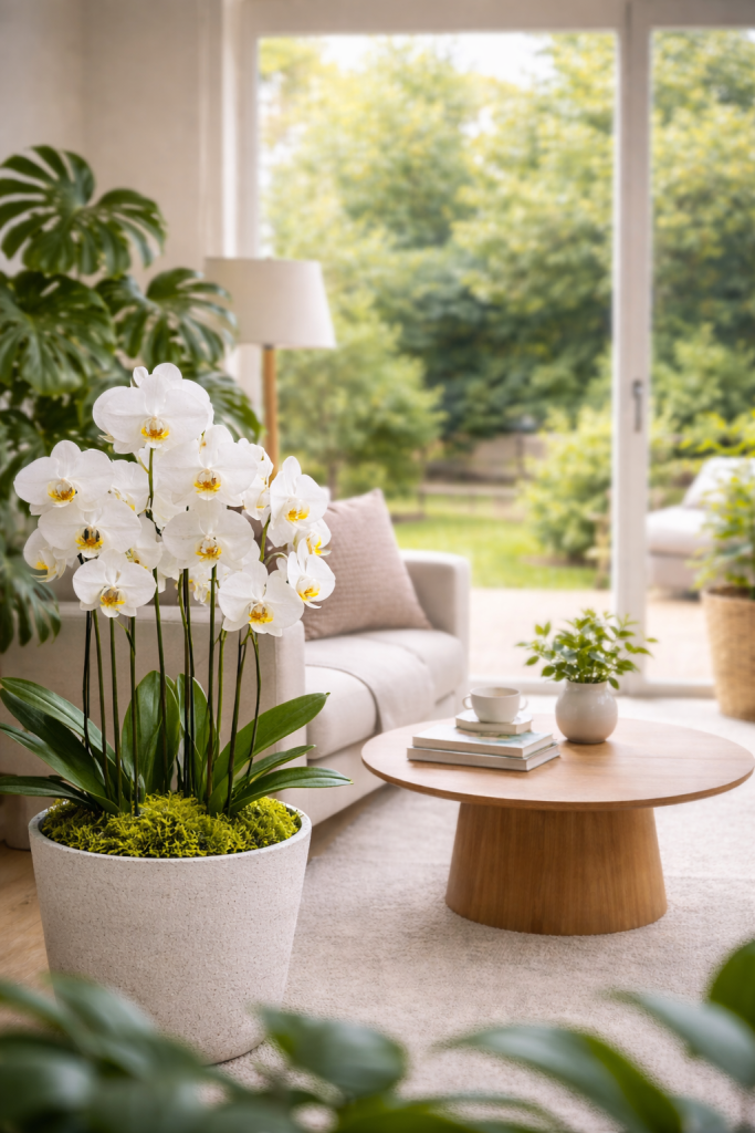 Spaces that feel balanced and peaceful often leave a stronger impression on visitors. Natural light combined with healthy plants creates an atmosphere that feels intentional and well-maintained. Even subtle changes — like placing a thriving orchid near a window — can make a room appear more complete.