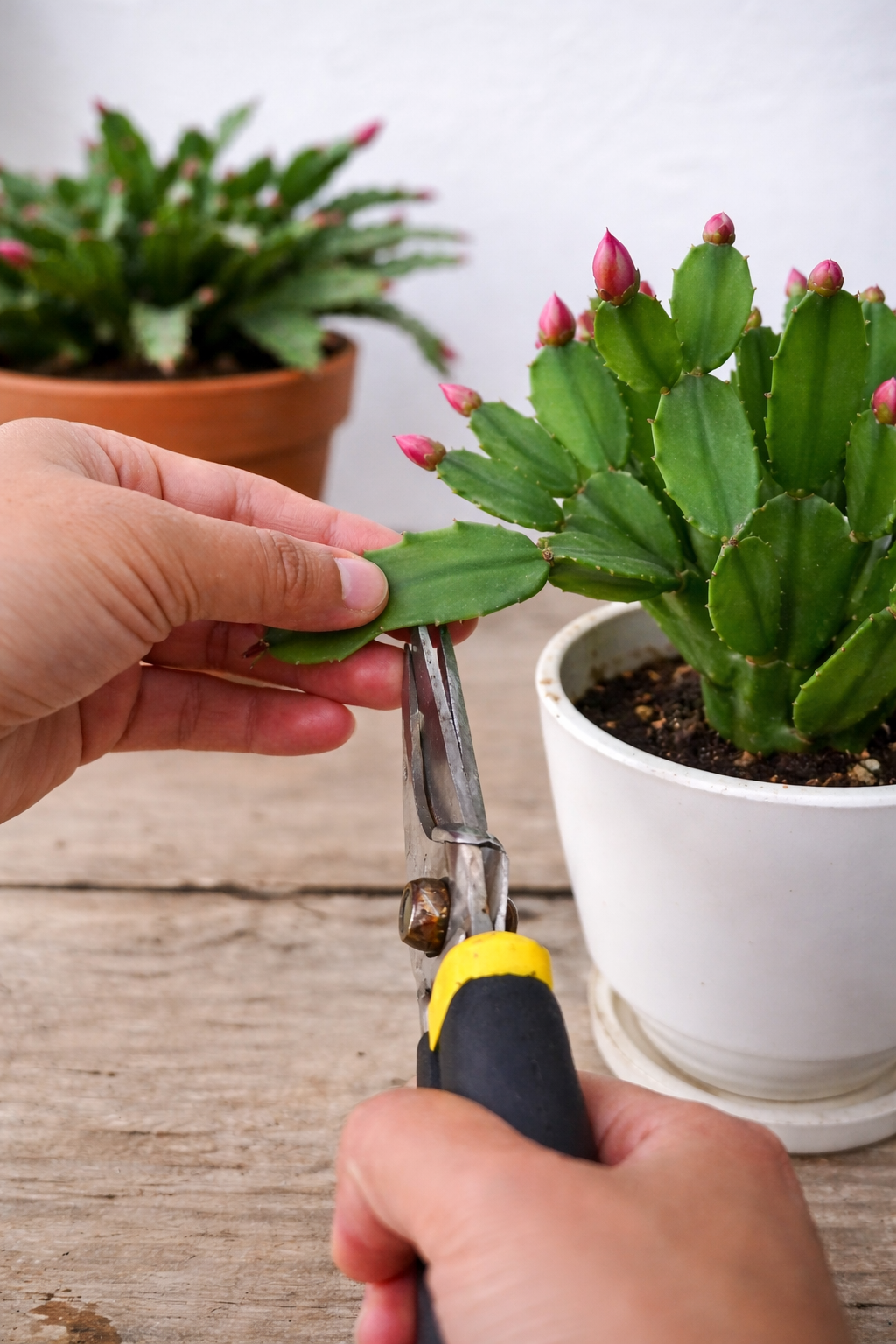 Christmas cactus (Schlumbergera) grows in segments. Each segment stores energy, which means a clean, strategic cut encourages branching instead of stress.
