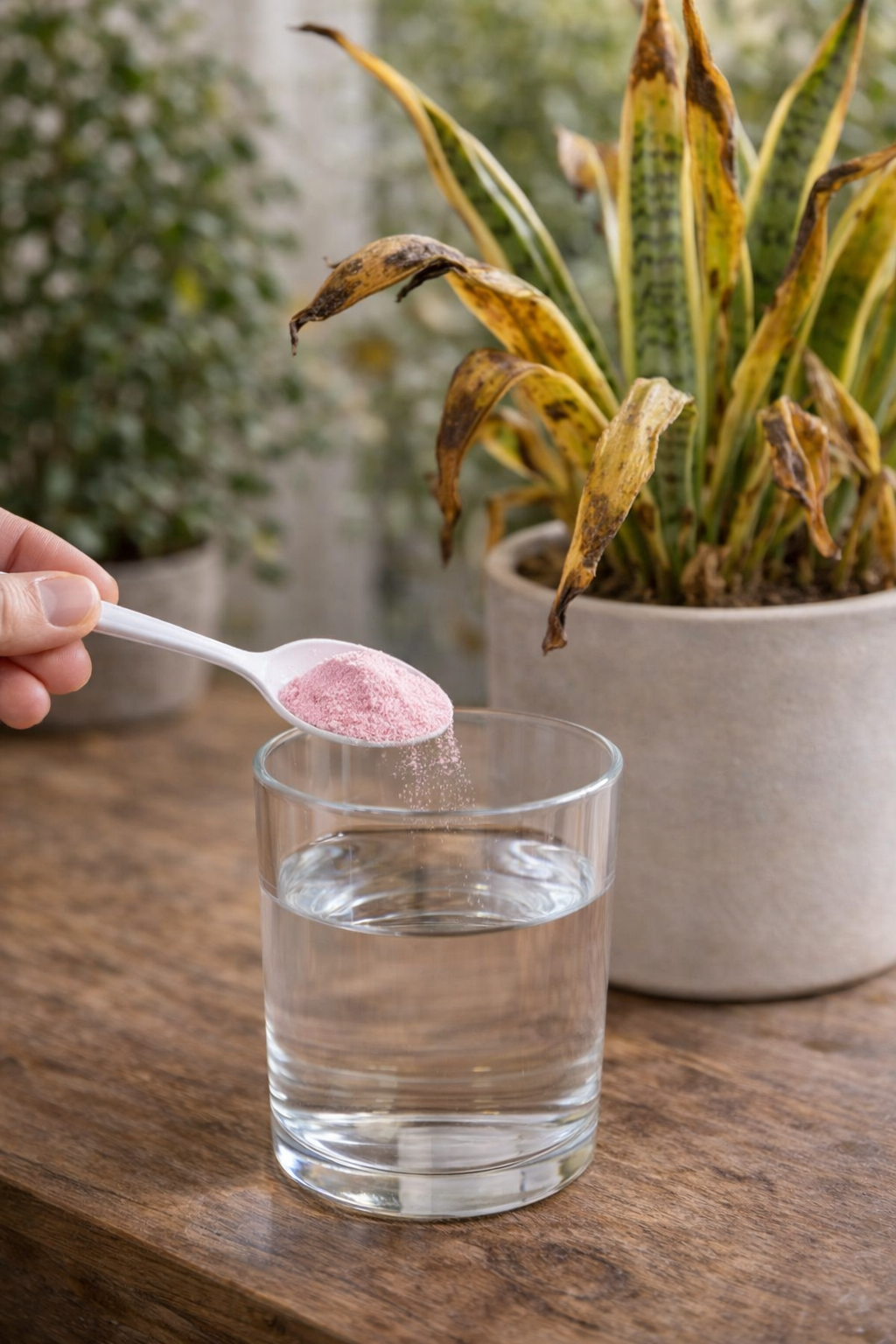 Snake plants are known for being tough, but even strong indoor plants can start turning yellow when watering habits, soil balance, or nutrients become inconsistent. Recently, many indoor gardeners and luxury home stylists have started using a very mild diluted pink mineral powder solution as part of a gentle recovery routine.
