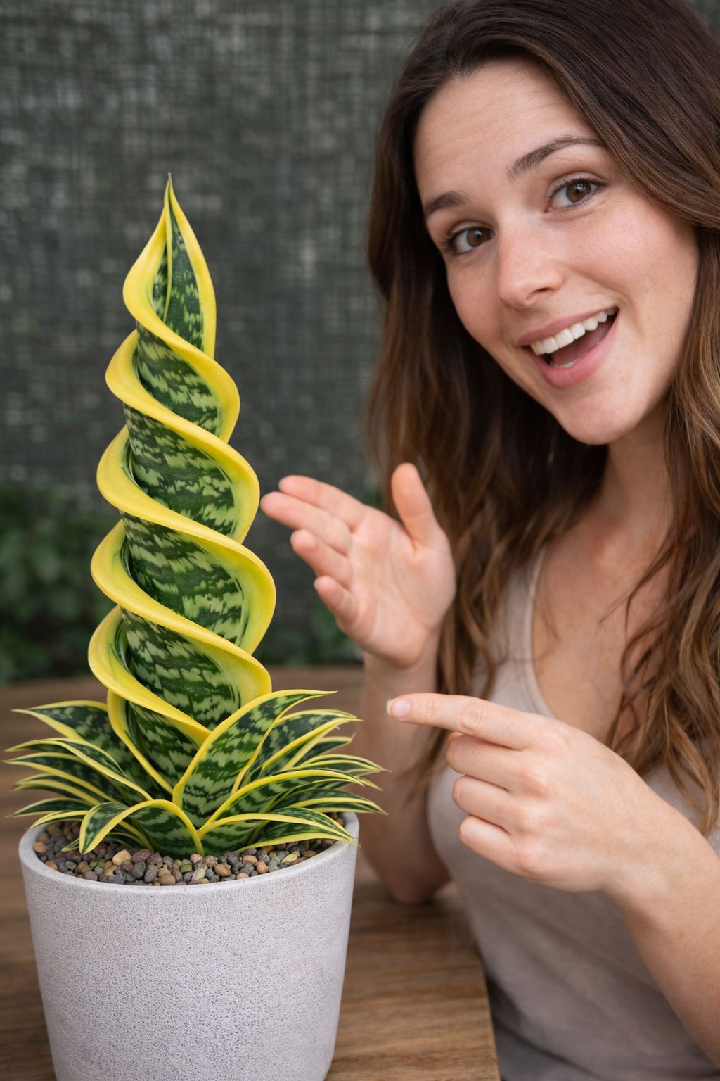 Spiral snake plants stand out because of their compact growth and unique leaf structure. The twisting pattern is often achieved through controlled growth conditions and careful plant training, which gives the plant its signature modern aesthetic.