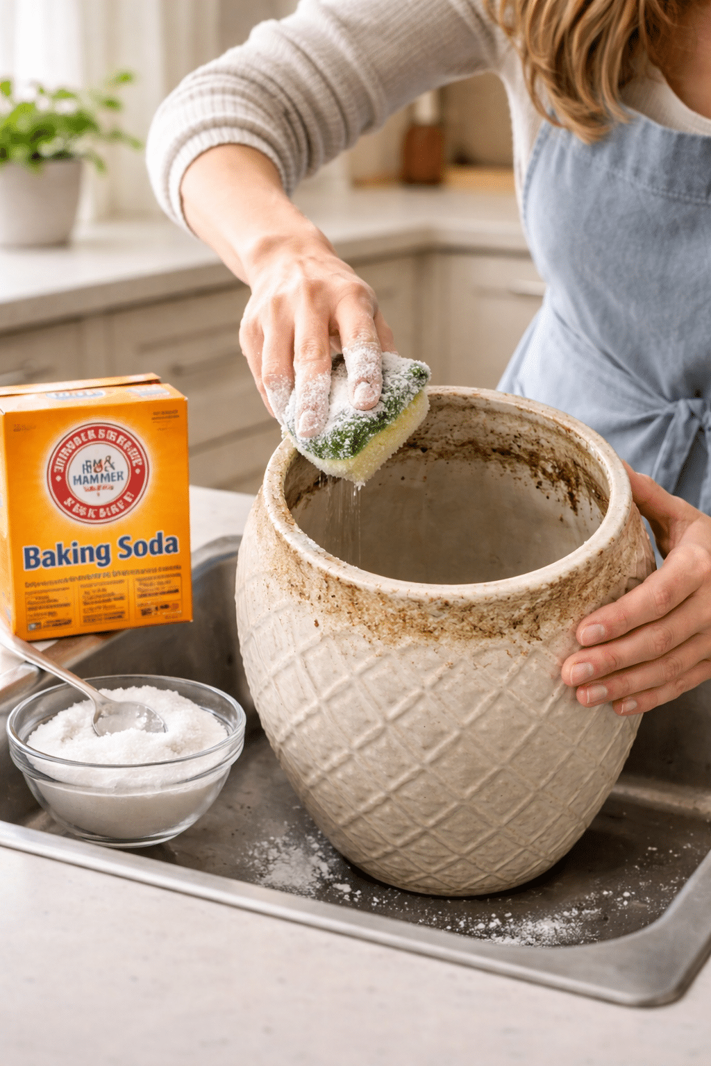 Yes. Baking soda is very useful for lifting grime, reducing odor, and gently scrubbing stains from ceramic planters. It is especially effective when made into a paste.