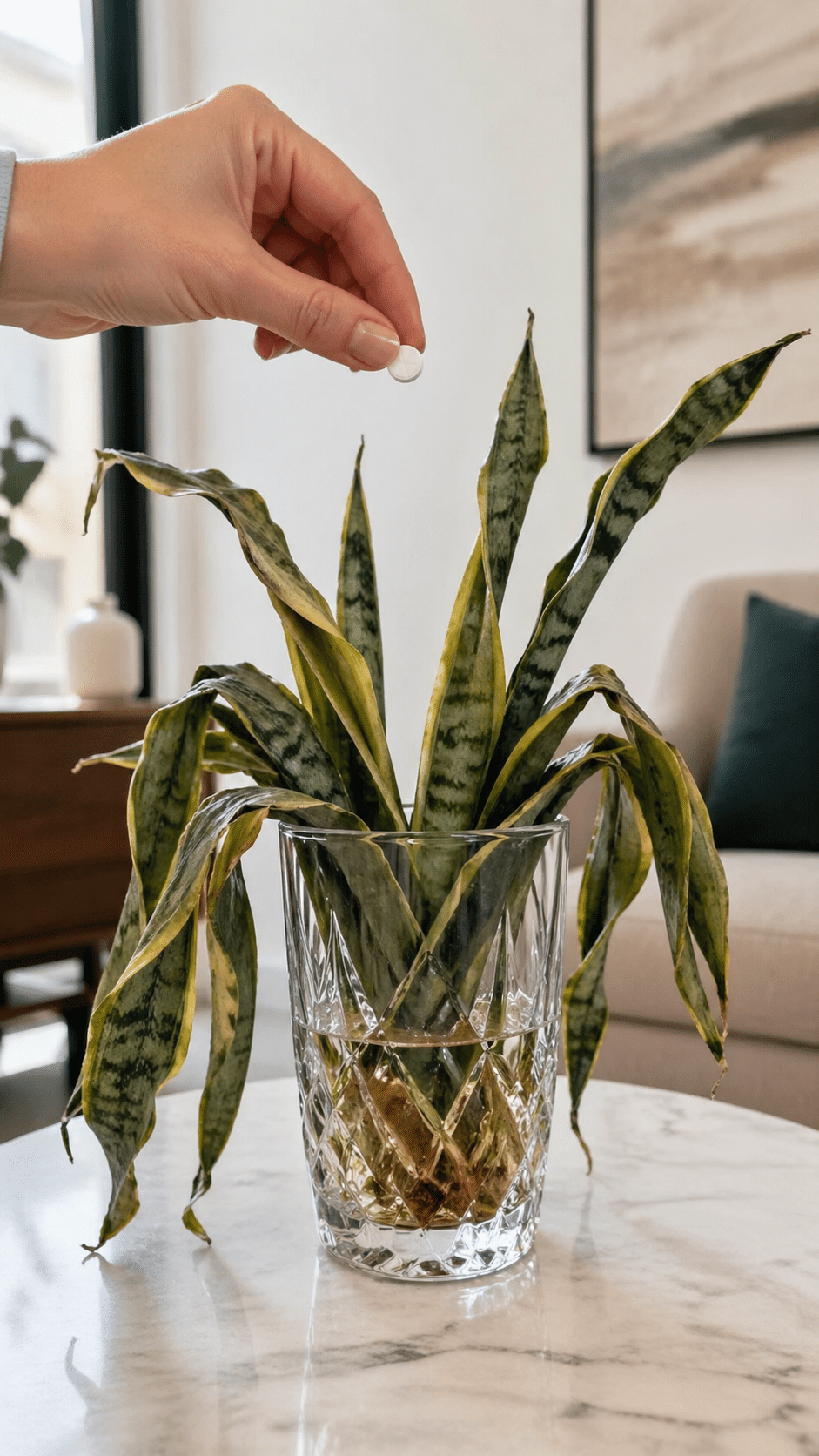 A simple tablet dropped into a weak snake plant’s water can look like the whole secret, but smart homeowners know that healthy plants are never built on one dramatic step alone. Real recovery comes from understanding the plant, checking the roots, protecting the base, controlling the water environment, improving the light, and only then using support methods that actually fit the plant’s needs.